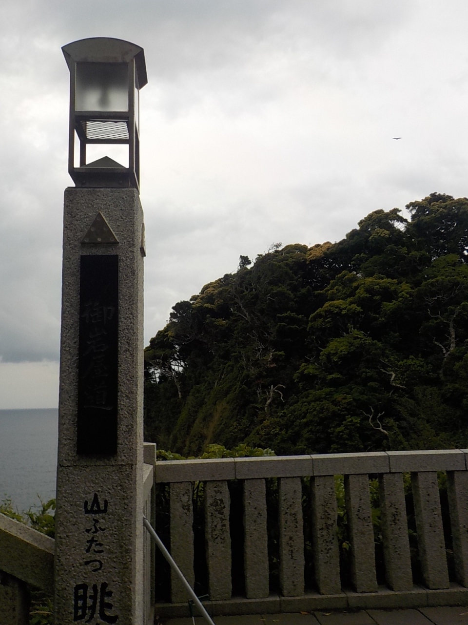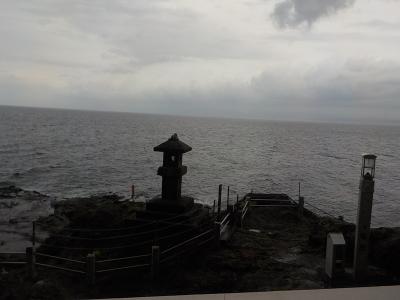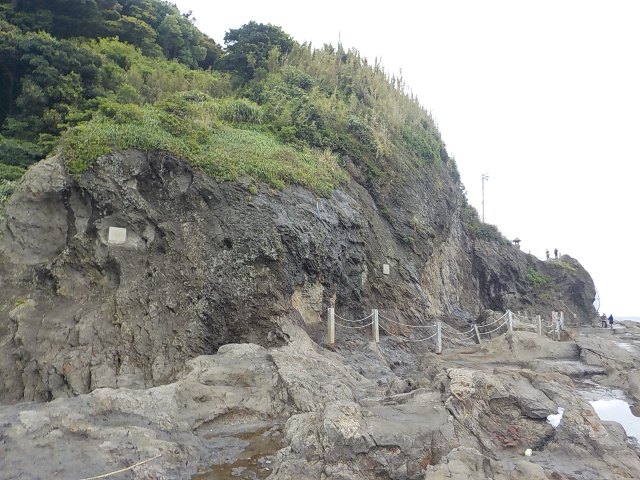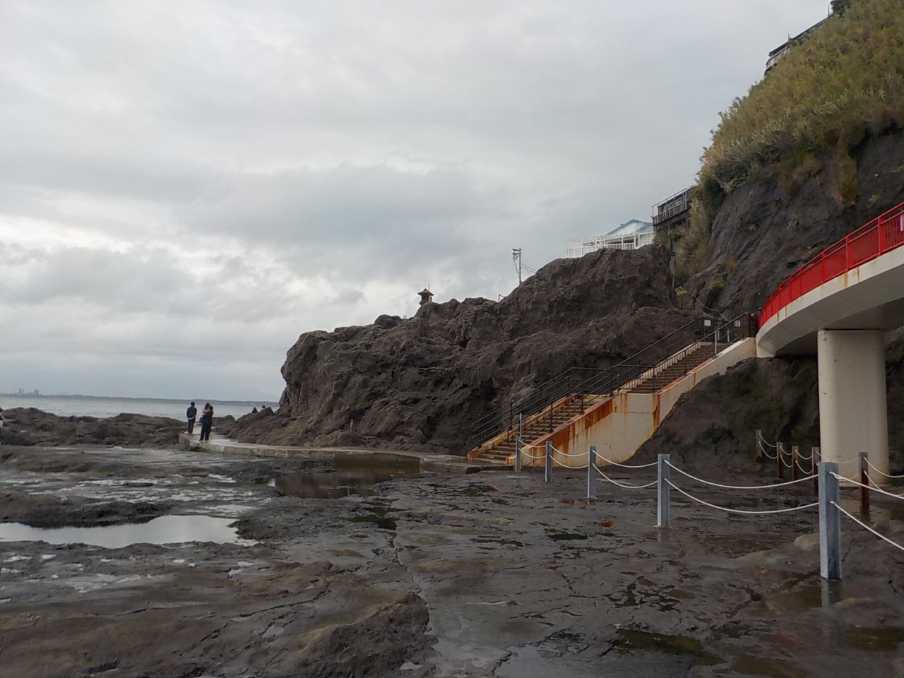 - 江島神社奥津宮からどんどん階段を下りて行くと、突然見晴らしの良い海岸線が現れます。
