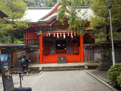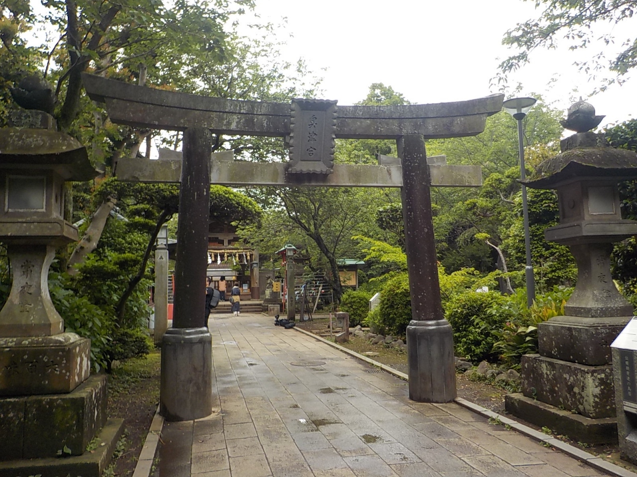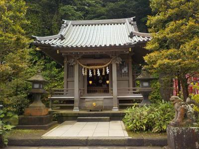 江島神社辺津宮のすぐ近くにある江島神社の境内社です。鎌倉の腰越の小動岬に社があったのですが、津波で壊滅し海中に沈んでいたご神体(建早須佐之男命)を地元の漁師が見つけて、ここへお祀りしたと伝えられています。このことから毎年7月に江の島天王祭が行われ、八坂神社と腰越の小動神社の神輿が、海上渡御を行うことでも知られています。