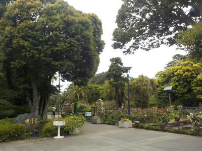 5月中旬でしたので、きっとバラがきれいだろうと思ってサムエル・コッキング苑に出かけました。決して天候の良い日ではなかったので、遠くの景色は楽しめませんでしたが、その分きれいなバラが目を楽しませてくれました。江の島の最上部にある展望灯台シーキャンドルの周辺に広がる植物園です。いろいろな植物、四季おりおりの草花が植えられています。仏場は数多くの椿、訪れた5月と10月にはバラが咲きますが、中でもカナダ・ウィンザー市から寄贈された深紅のバラがきれいでした。