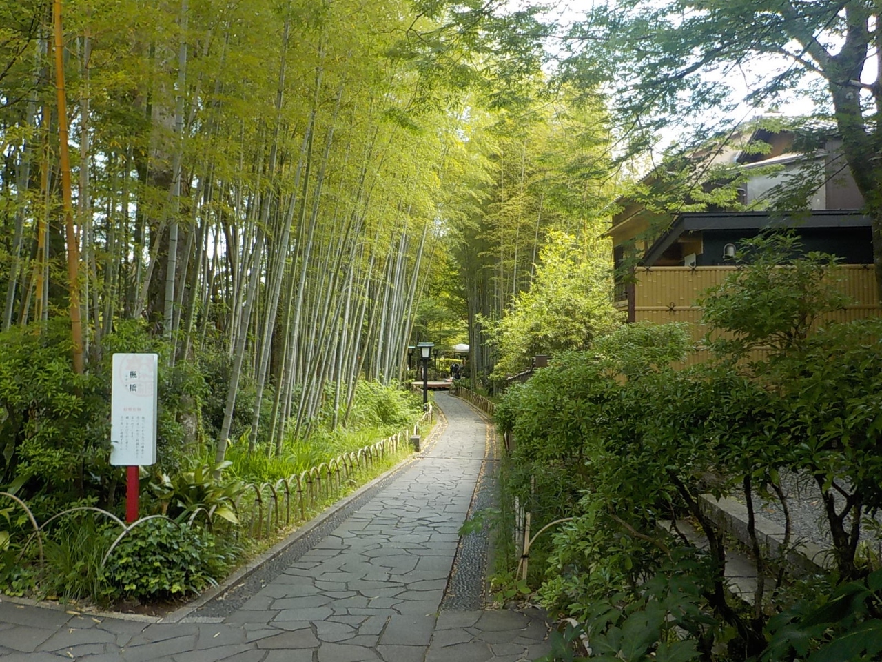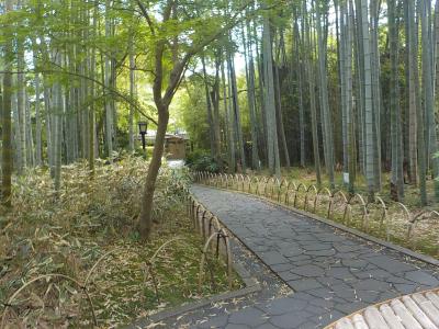 修善寺温泉街に車を駐車してこの小径を歩いてみました。爽やかな風が抜けて、竹の葉の緑とよい香りが感じられるので、癒されスポットになっています。小径の途中に休憩する観光客がいましたが、その数も少なくて静かな雰囲気を楽しめました。夜はライトアップされ竹林の小径の別の表情が楽しめるようですが、今夜の宿に向かわなくてはならず残念でした。