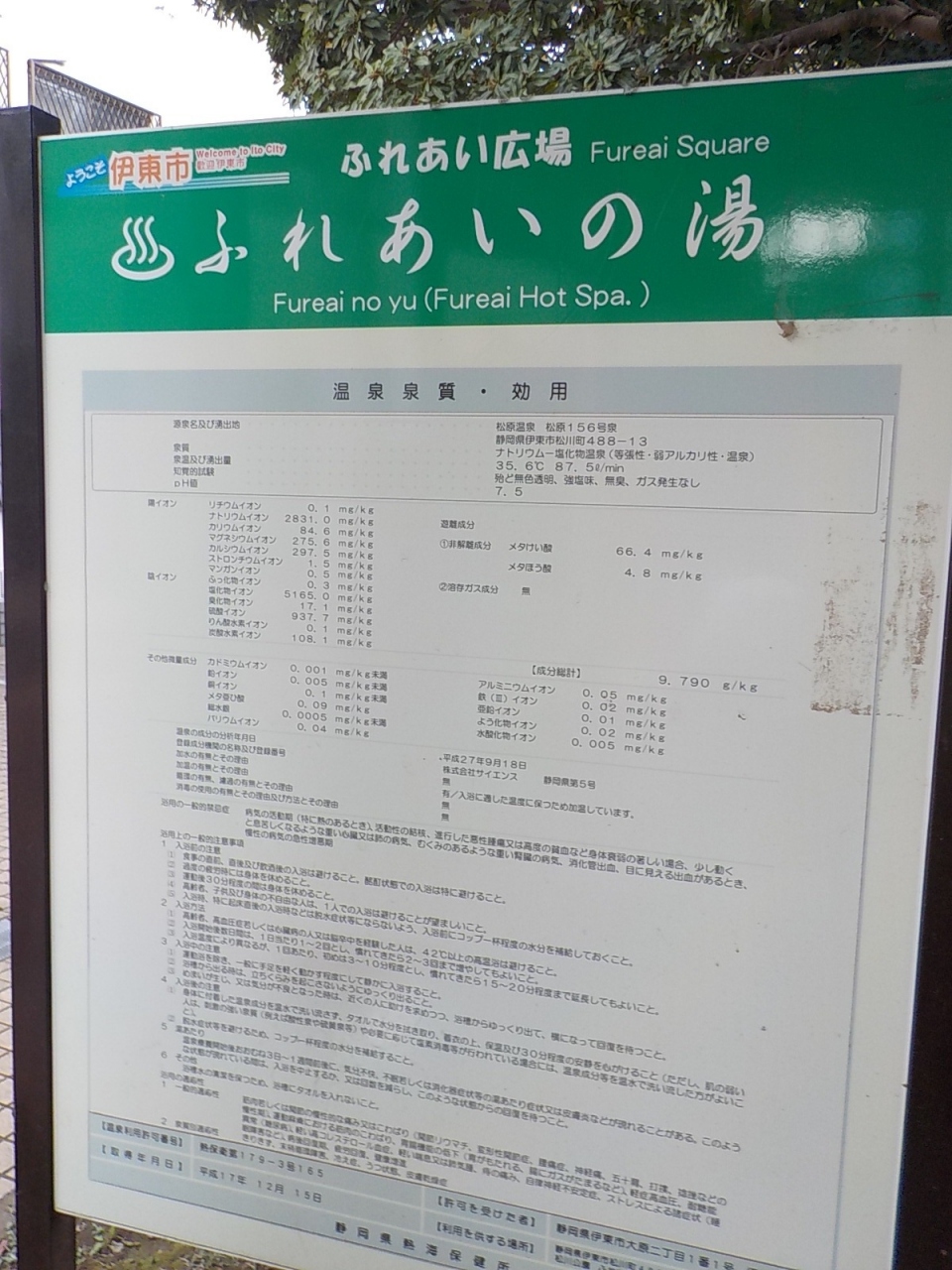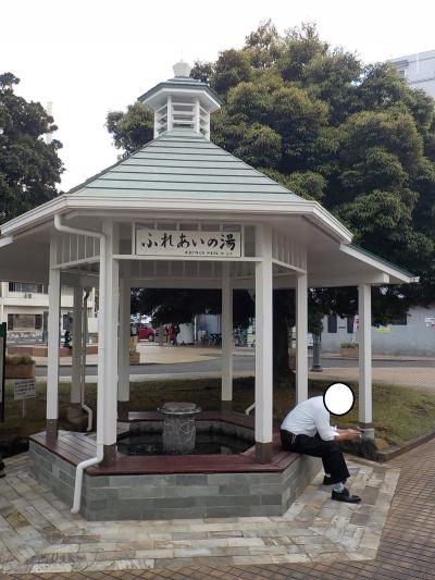 伊東温泉に1泊した時に、夕食前の時間を使って街中を散歩しました。たっぷり時間がないのでホテルからあまり遠くに行けないので、松川遊歩道、キネマ通り、湯の花通りのお湯かけ七福神そしてこの松川公園足湯「ふれあいの湯」でした。この足湯はキネマ通りを南側に抜けた所から修善寺街道を西に歩いたところにあります。公園の一角に東屋のような感じの真っ白い建物があります。その中に六角形の足湯があります。お互いの顔を見ながら足湯が楽しめますので、知らない人とも話すきっかけができます。足湯の効能は筋肉または間接の慢性的なこわばり、軽い高コレステロール血症、軽い喘息などに効果があるそうです。