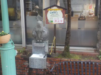伊東駅近くの湯の花通りと裏道にお湯かけ七福神が置かれています。湯の花通りの北側入口にあるパン屋さんで、七福神めぐりの地図をもらいました。初めに見つけたのは七福神めぐりの一つ寿老人でこのパン屋さんのすぐ横にありました。長寿の神様です。石造は可愛い感じに仕上がっています。土産物屋さんをのぞきながら、お湯かけ七福神を探しまわりましたが、意外に楽しめました。