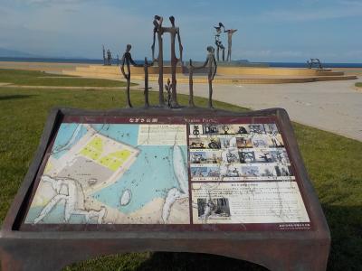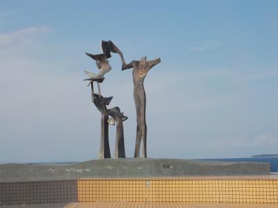 伊東温泉1泊2日の旅行でホテルにチェックインした後に海岸線に沿って散歩に出かけました。市制30周年記念事業として1977年に作られた公園です。伊東出身の彫刻家重岡建治の作品が芝地にたくさん置かれています。平和と幸せを希求する姿を表しているそうですが、よく分かりませんでした。公園に座って風に吹かれながら海の景色を見てゆったりした時間を過ごすにはよい場所です。