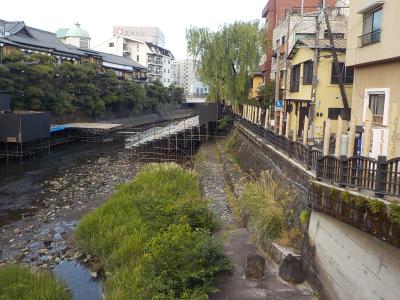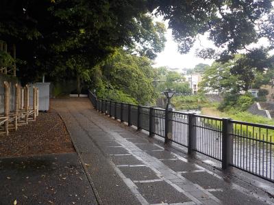 ホテルにチェックインした後に夕食までの時間を利用して伊東の町を散策しました。音無神社まで行った後に松川遊歩道を辿って河口まで歩きました。旅館街を流れる松川の右岸にある遊歩道は上り下りはなくよく整備されているので歩きやすいです。また夜ほのかな灯になる竹灯籠がたくさん並べられていました。灯が入るとまた違った景観を楽しむことができると思います。河口付近は国道を横断できませんので、一度河原の道に下りて国道の橋の下をくぐらないといけません。