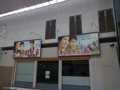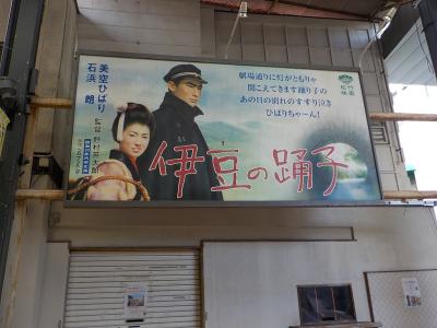 JR伊東駅近くにある湯の花通りで「お湯かけ七福神」を探すスタンプラリーを楽しんだ後に湯の花通りを南に通り抜け、キネマ通りに入りました。ここも商店街で綺麗なアーケードはスカイドームtぉ呼ばれています。少し南に向かって歩くと、戦前にあった映画館「キネマホール」があります。この通りの名、キネマ通りはこの映画館にに因んで付けられたものです。昔の映画館のような建物(内部は?)が残っていますが、その壁には昔懐かしい映画の手書き看板がかけられていました。