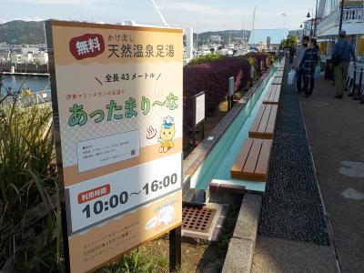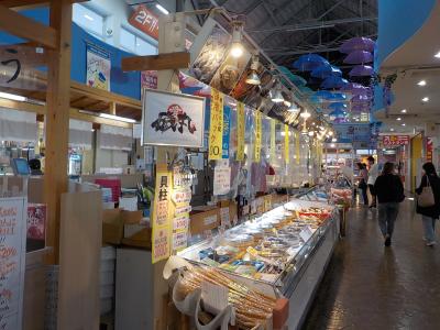 国道135号に面し海沿いに斬新なカラーの建物がずらっと並んでいるのは道の駅「伊東マリンタウン」です。伊東市観光案内所、レストラン、お土産物店、マリーナなどがあるほか伊東温泉らしく海を見ながら楽しめる足湯、立寄り湯などが並んでいます。遊覧船も出ています。メインになるバザール棟は1階は名物、地元特産品販売のお店が並び、2階には海の幸を生かした食事処があります。今回は伊東市観光案内所で地元の情報を集め、カラフルな建物の裏手を海の風を感じながら歩きました。終わりにもちろんお土産を買いましたが、干物などは別送にしました。