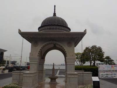 山下公園を歩いていると、大きくはないですがパゴダのような風変わりな建物が見えてきます。これは1923年に起こった関東大震災の時に山下町に住んでいた多くのインド人も被災をします。彼らを救済するために横浜市がインド人を救済し絹貿易の早い復興を目指します。店舗兼住宅をインド人商人に提供し、震災からの早い復興を果たしました。インド水塔はこのような援助に感謝し、慰霊の意味も含めて横浜インド商組合が1939年(昭和14年)に横浜市にインド水塔を寄贈したものです。