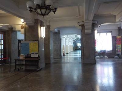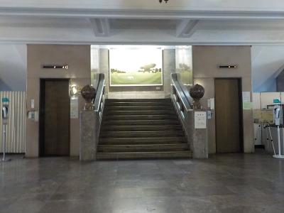 日本大通りに面して建てられている神奈川県庁本庁舎は1928年(昭和3年)に竣工したもので、横浜三塔のひとつに数えられています。通称「キングの塔」と言われています。五重の塔をイメージして作られているんだそうですが、自分にはそれは感じられません。むしろ1920年代に欧米で流行したアール・デコ様式取り入れた中に和風の雰囲気を取り入れているように感じます。正面玄関から内部に入ると大理石造りの中央の階段の両端にある装飾灯が目立ちます。また階段の手すりも非常に凝っています。ともに宝相華のデザインが取り入れてあります。