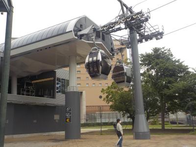 JR桜木町駅前とみなとみらいの新港地区にある運河パーク駅を結ぶ都市型ロープウェイです。全長は約700mありますが所要時間は約5分です。日本でこのような形で運営されている都市型ロープウェイは他にないと思います。エアコンが装備されていて暑い日や雨の日には快適と思いますが、通常料金は1000円と聞きドン引きしました。でも最高で40mの空中からコスモクロック21やヨコハマ・グランド・インターコンチネンタルホテルが見られ鵜というのは魅力的です。