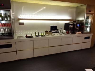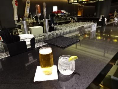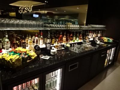 ワンワールドステータスで入室しました。まず入室すると右手にバーカウンターがお迎え。