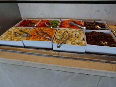 右奥のエリアはダイニングエリアです。料理やデザートの種類が多いです。しかも、シェフが常駐しているので、「本日メニュー」をその場で作って頂けるので、温かい料理を頂くことが出来ます。