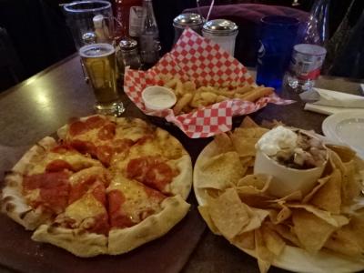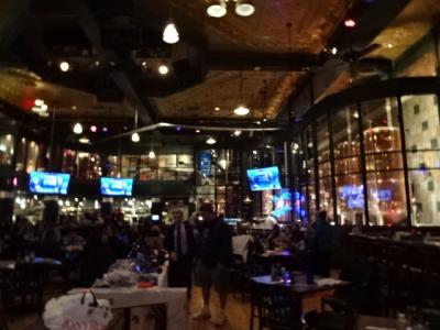 月曜日のNFLマンデーフットボール時にハッピーアワーで利用しました(数年前はアメフト開催時のハッピーアワーは無かったので、集客狙いに変更したと思われます)。試合開始の30分前に到着し、タイミング良く座ることが出来ました(ハッピーアワーの終了時間は試合終了後でしたが、前半が終了したところで出て来た時は10組近く並んでいました)。種類豊富の地ビールが16oz($2)や23oz($3)で飲め、料理は通常メニューに加え、$3・$5・$7のお得なメニューがあります。$7のペパロニ ピザを注文し、とても美味しかったです。得点毎にイベント行っていて、多くの客がビールを飲みながら、アメフトを見ていて盛り上がっていました。少額でもスポーツブックで購入しておくとさらに楽しむことが出来ます。
