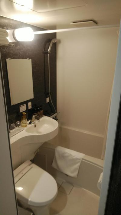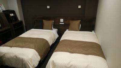 土浦駅東口から徒歩3分の場所で、オープンして1年の新しいビジネスホテルです。専用駐車場は無く、近くのコインパーキング(400円)を利用しました。