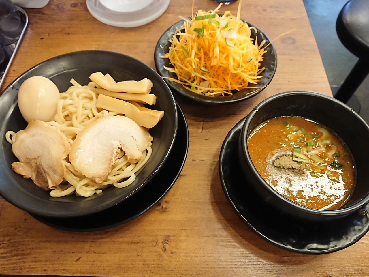 つけ汁は、煮干の風味と辛さもあって、太めの麺に絡んで美味しかったんですが、太麺は食べごたえがあって、かなりお腹いっぱいになりました。