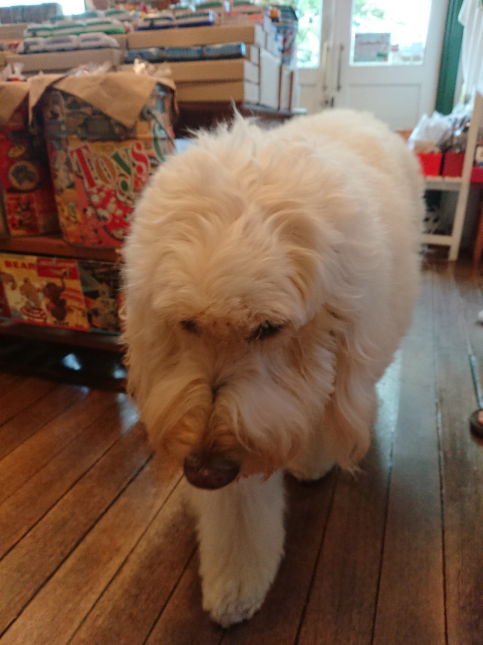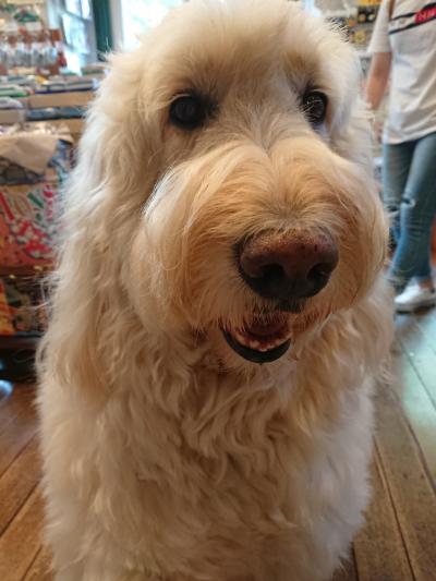 物販スペースだけでも楽しめますが、店内には可愛いワンちゃんがいました!