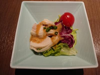 前菜に棒々鶏と、3色小籠包(豚肉、烏龍、蟹味噌)、白酸辣湯麺が付いてきます。