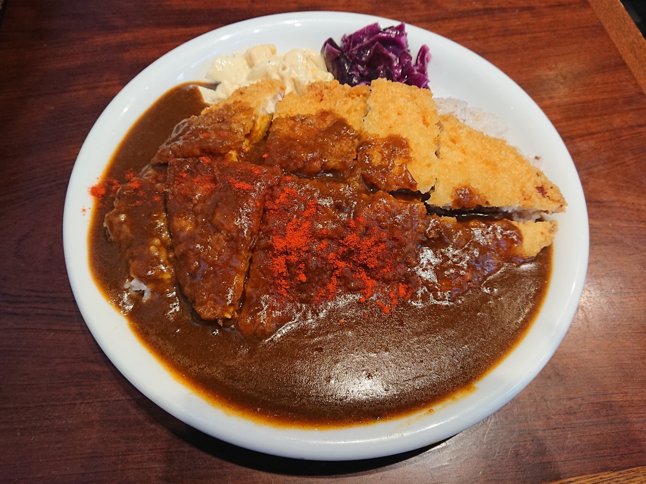 ランチメニューは、カツカレーや唐揚げ、ハンバーグ等のガッツリメニューが並びます。カツカレーを注文しましたが・・古い油の臭いがして、カツが美味しくありません(-_-;)