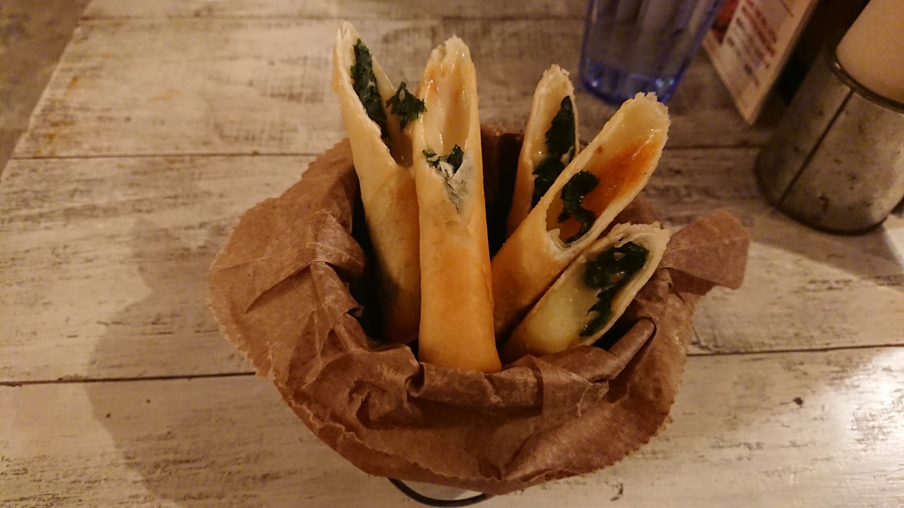 料理は、ケールとチーズの揚げ春巻が熱々で美味しかった!