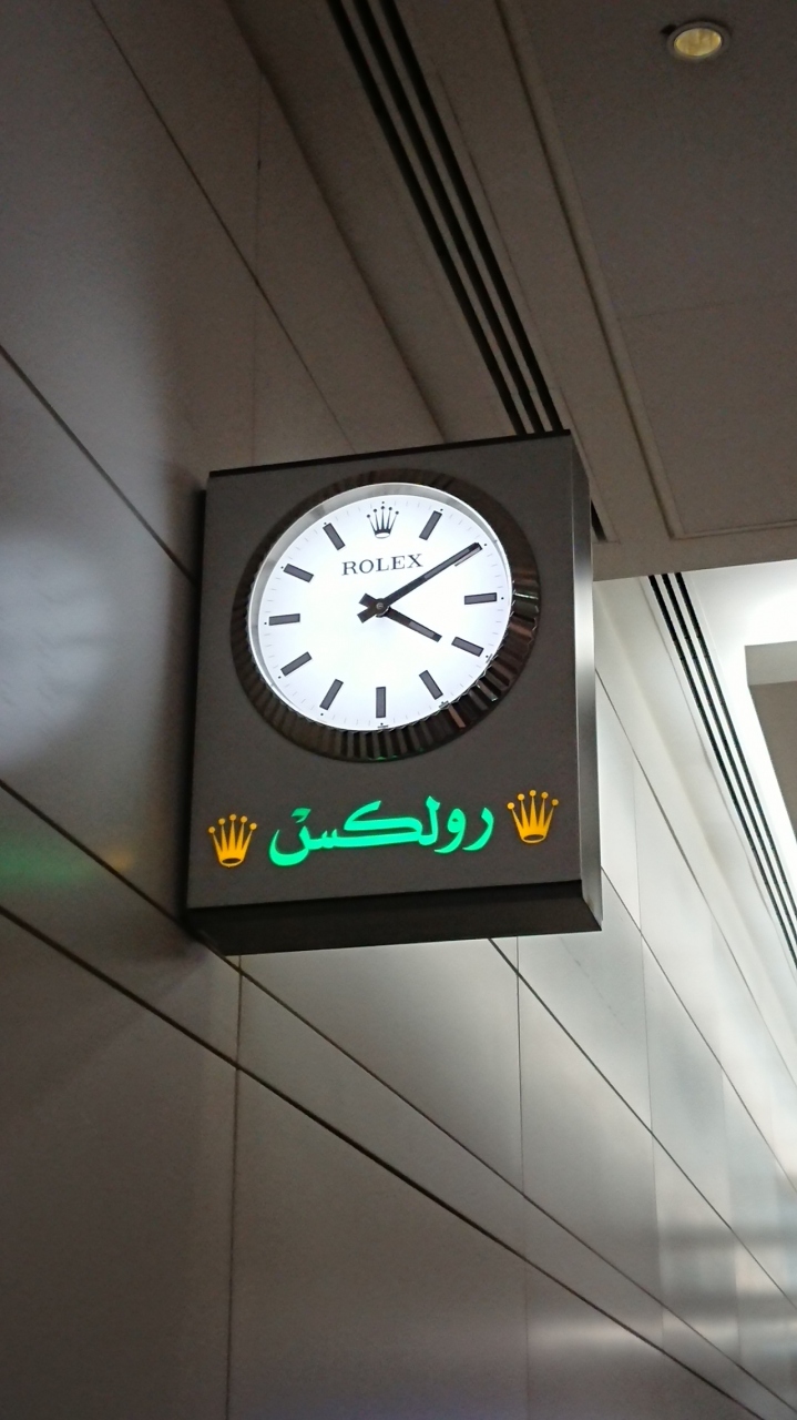 空港自体はそんなにきらびやかではありませんが、よくよく見ると空港の時計がROLEXです。