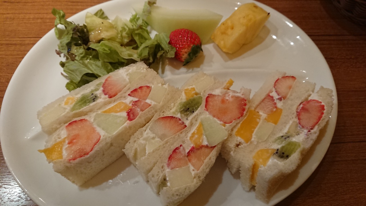 こちらのフルーツサンドイッチは、色々な種類のフルーツがたっぷり入っていて、美味しです。