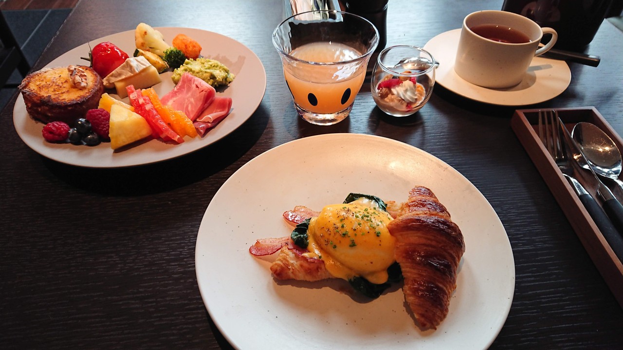ホテルの朝食としては、料理の種類がそんなに多いわけではなかったけど、クロワッサンのエッグベネディクトが美味!