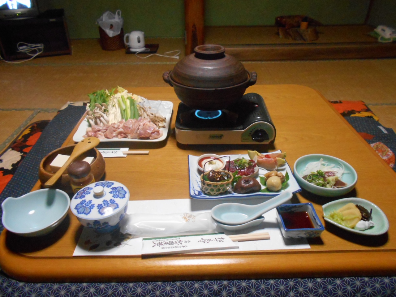 泊まった部屋は道路沿いの二間続きのメチャクチャ広い部屋でした。行者宿でしたので、壁が薄く道路からも人の声や、車が通るたびにガラス戸がガタガタと音がもれますが、夜になると不気味なくらい静かです。神経質な方は山側の部屋をリクエストした方がいいかも知れません。トイレも個室は狭く、大柄の人は洋式は膝が壁に当たって大変です。一言でいえばぼろいです。そこを味とするか否かで評価は分かれると思います。食事はボリューム満点です。小奇麗な温泉宿に慣れていると正直戸惑うと思います。