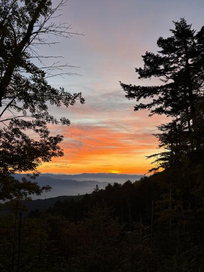 2日目、小屋の近くにあるビュースポットで日の出を見る。方角的には奥秩父...
