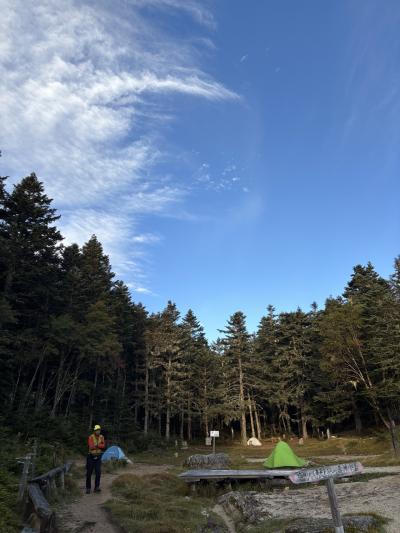 小屋の隣にあるテント場。テントが少なく、既に出発した人が多いのだろう。