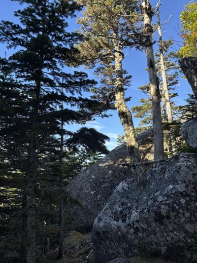 薬師が岳に向かって一歩づつ登る。大きな岩が出てきた。頂上に近づいている...