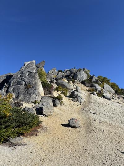 頂上付近は砂と岩。砂は花崗岩が風化したもの。北アルプスの燕岳と似ている...