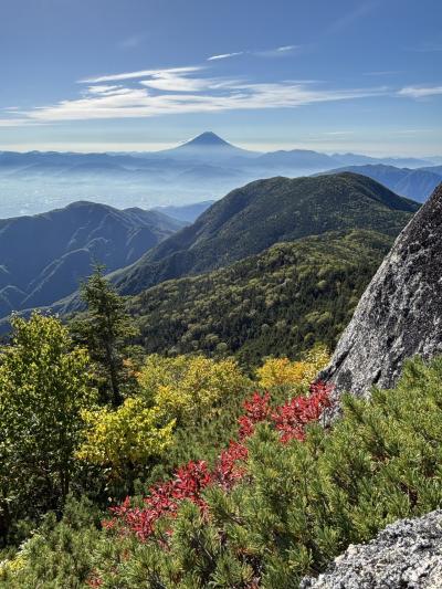 尾根に出ると、視界が開けてきた。目の前に標高第二位の北岳(3193m)...