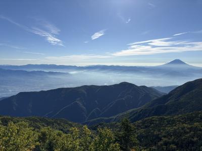 甲府方面の眺め。下界は暑いので雲が沸いてきたようだ。この雲が上に昇らな...