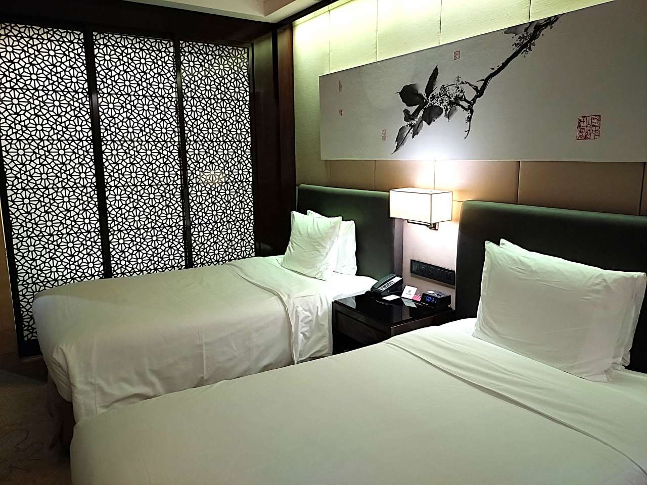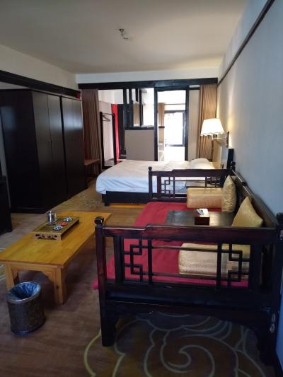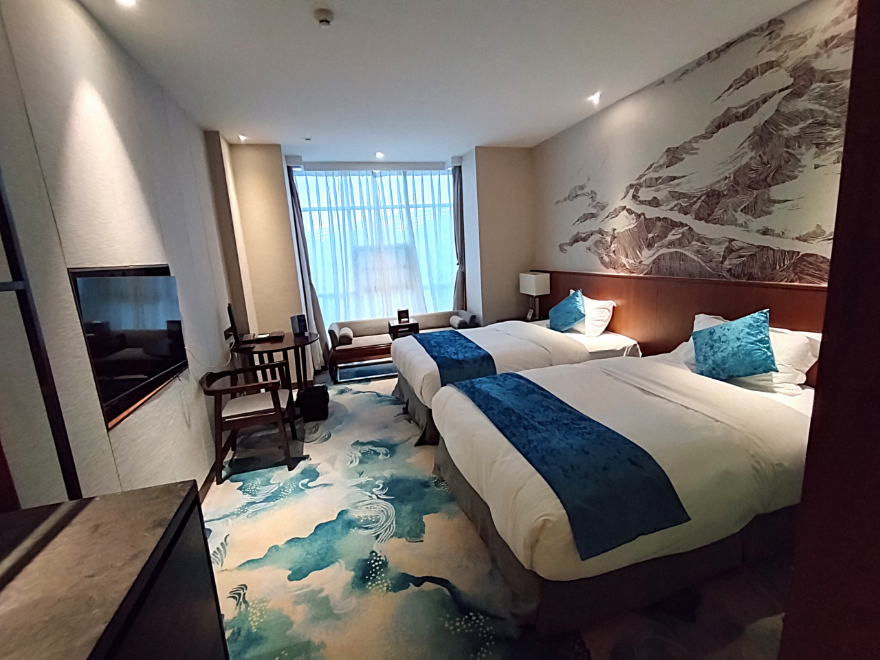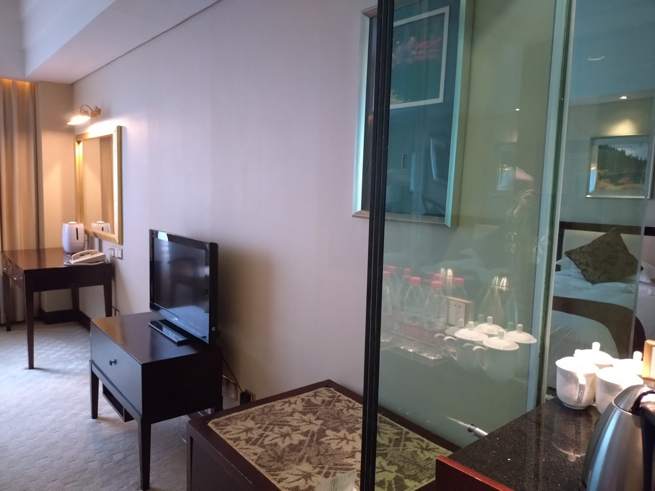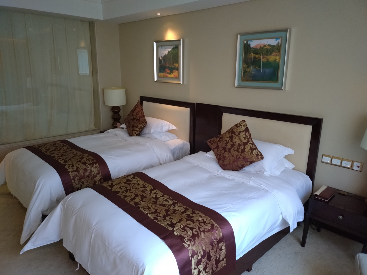 部屋は壁紙やカーペットが中国らしい模様、なかなかお洒落なホテルでした。