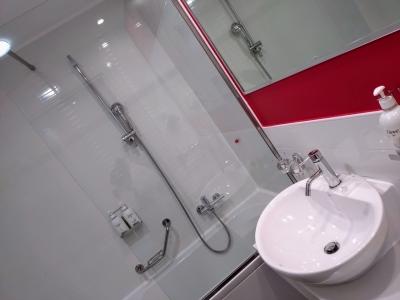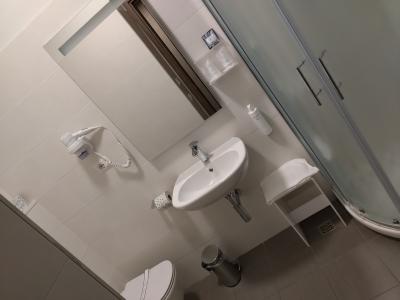 - シャワーのみ、拡大鏡無し、洗面台ちっちゃ
