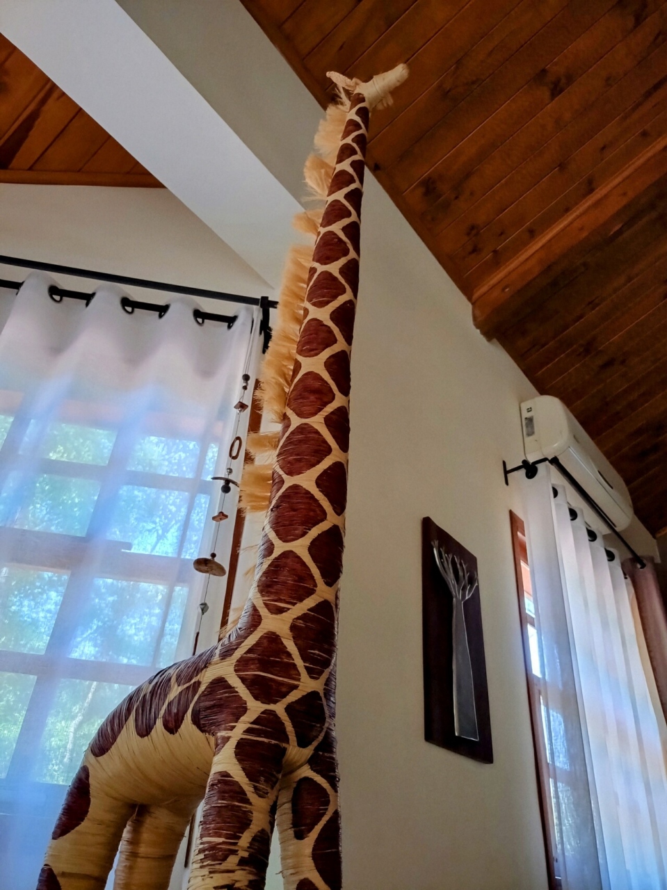 ソファ横に天井につくくらい大きなキリン、玄関ポーチの長椅子や蚊帳を束ねるタッセルもメッチャ可愛かったです!- 旅行時期
