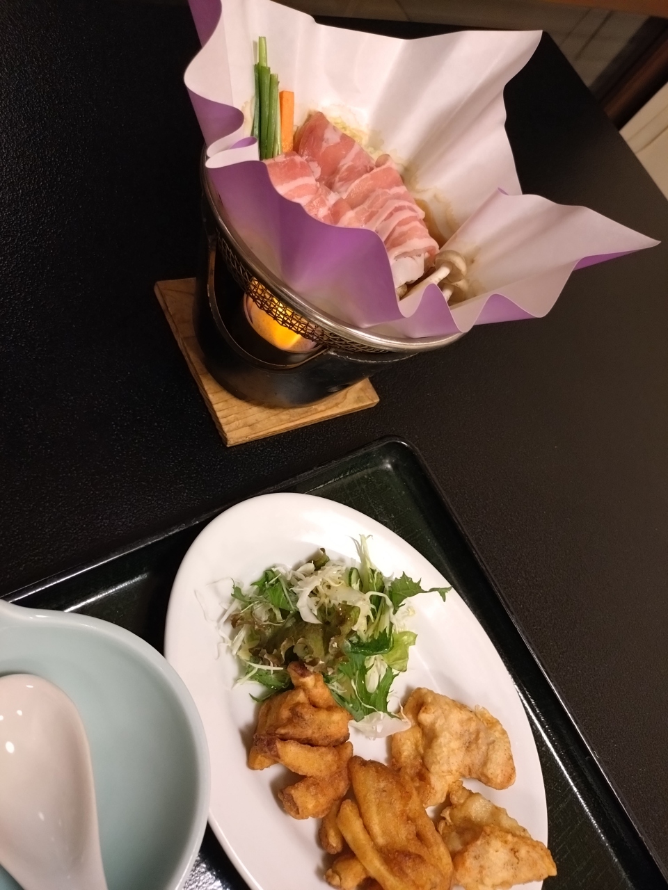 ホテルの前にタコ焼き屋さんがありましたが、出かけるのは面倒なのでホテルで2食をお願いしました。