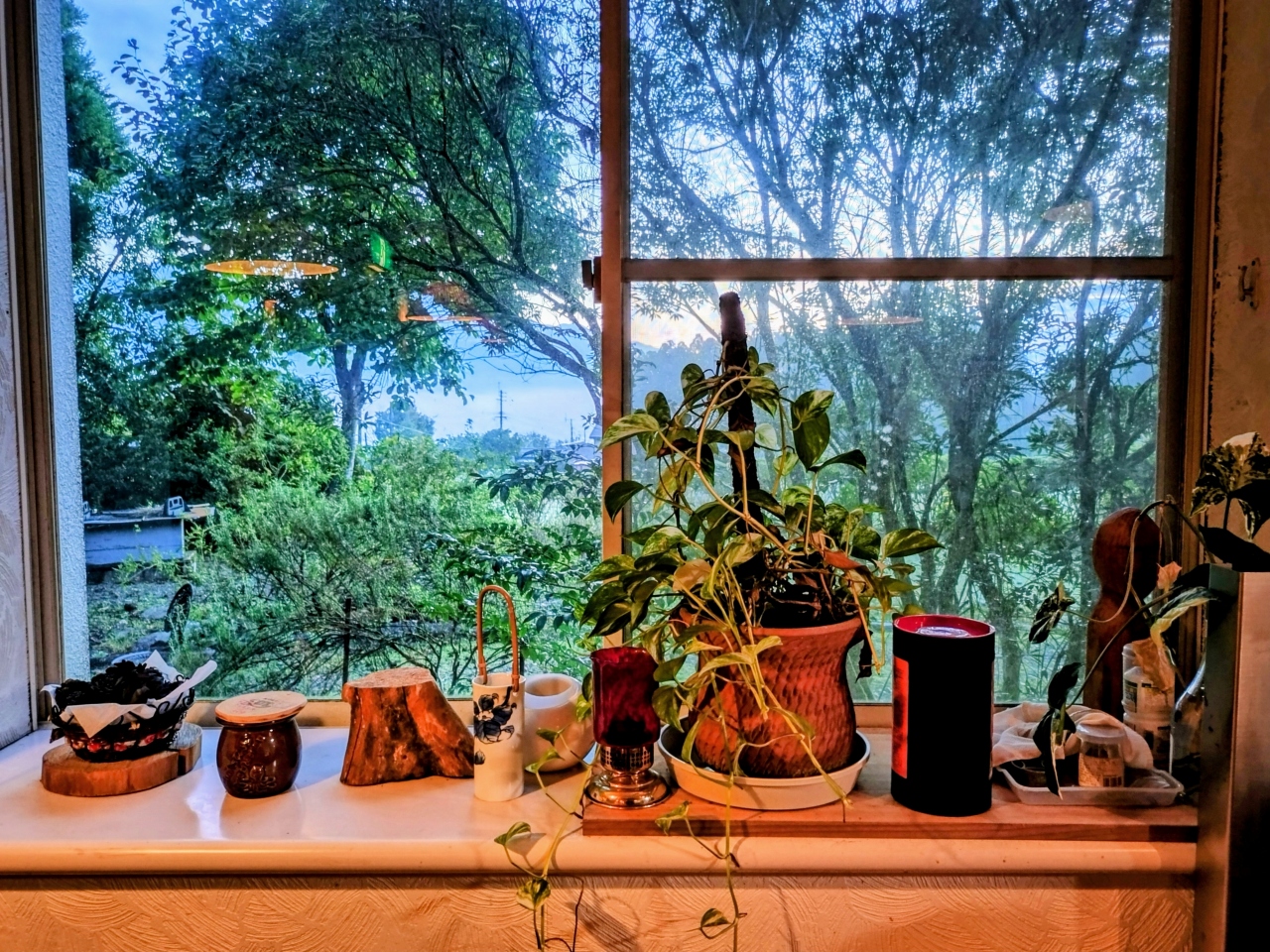古めかしい壁掛け扇風機があり、とりあえず蚊帳の木枠に洗濯ものを干して、扇風機の風をあてることができました。