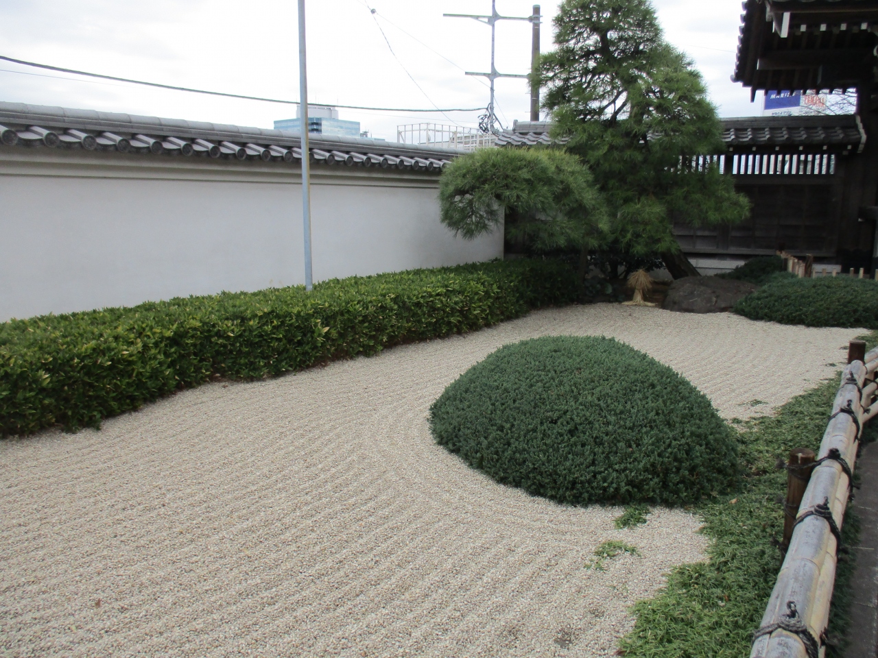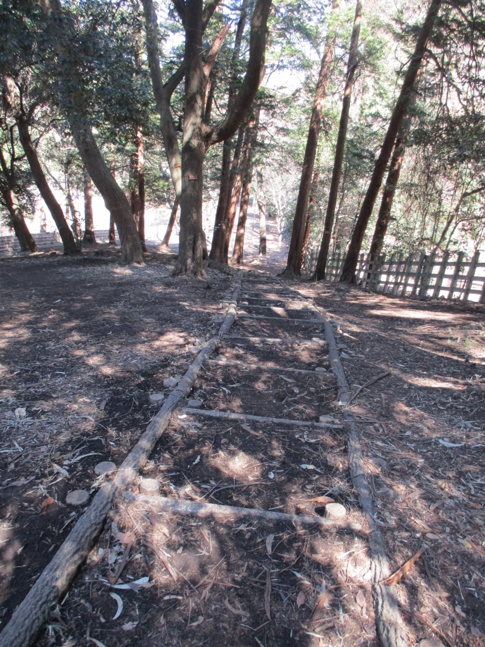 階段を上って行くと、手入れの行き届いた石の庭園があります。