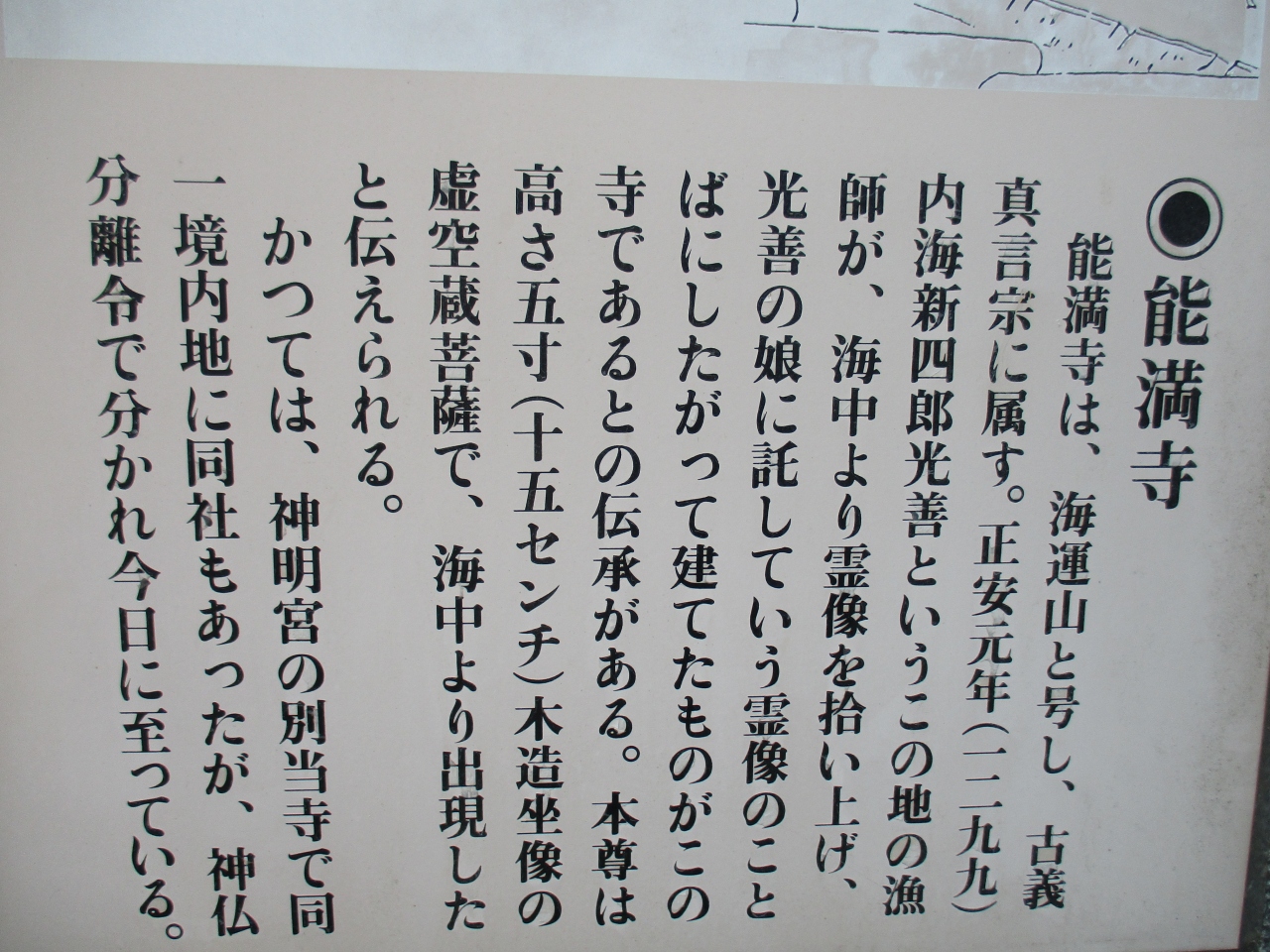 能満寺は、海中から出現した仏像を安置するために1299年に創建されたと伝えられています。