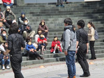 4月1日は歩行者天国、さくらフェスタをやっていましたが、あいにくの小雨模様。