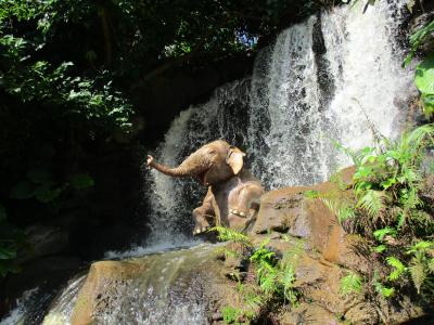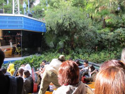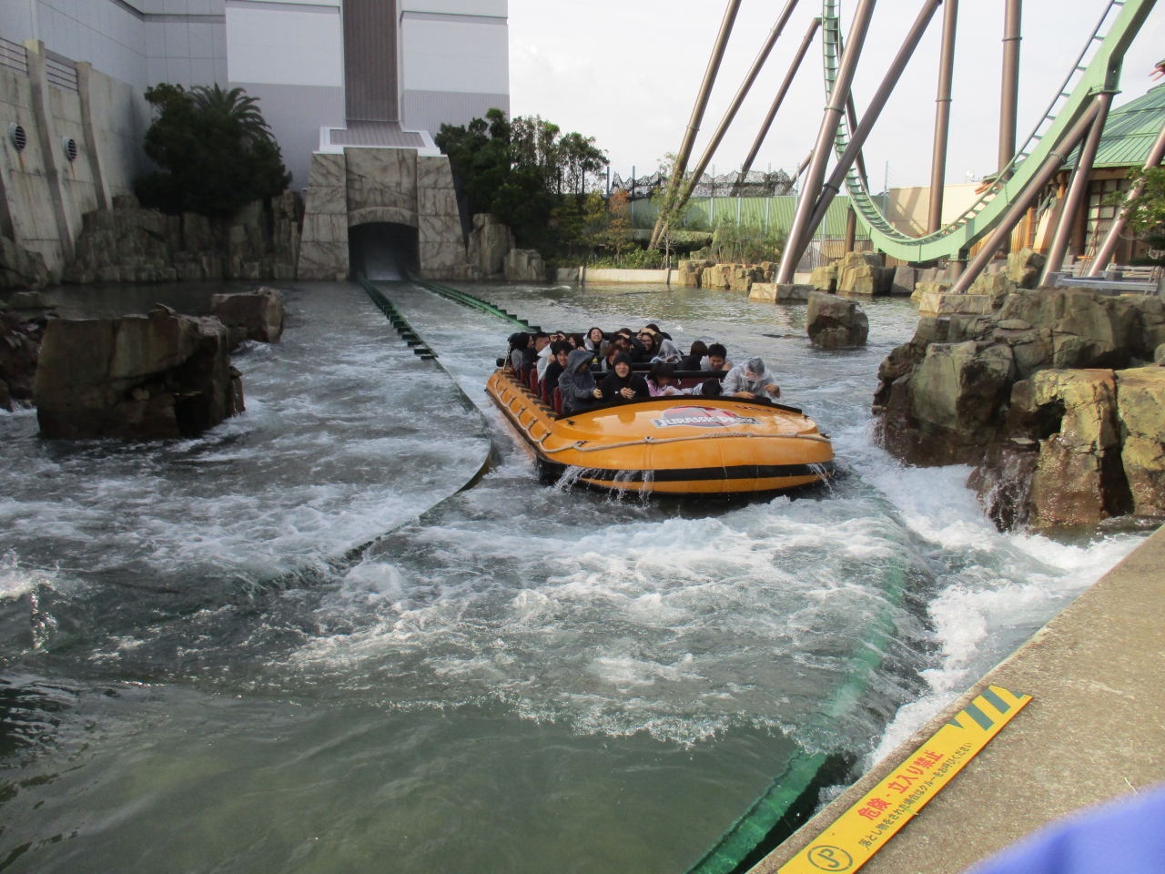 最後は滝のある湖にザブ~ン・でもって、前列と両端に座るとびっしょりになる、そんなアトラクションです。
