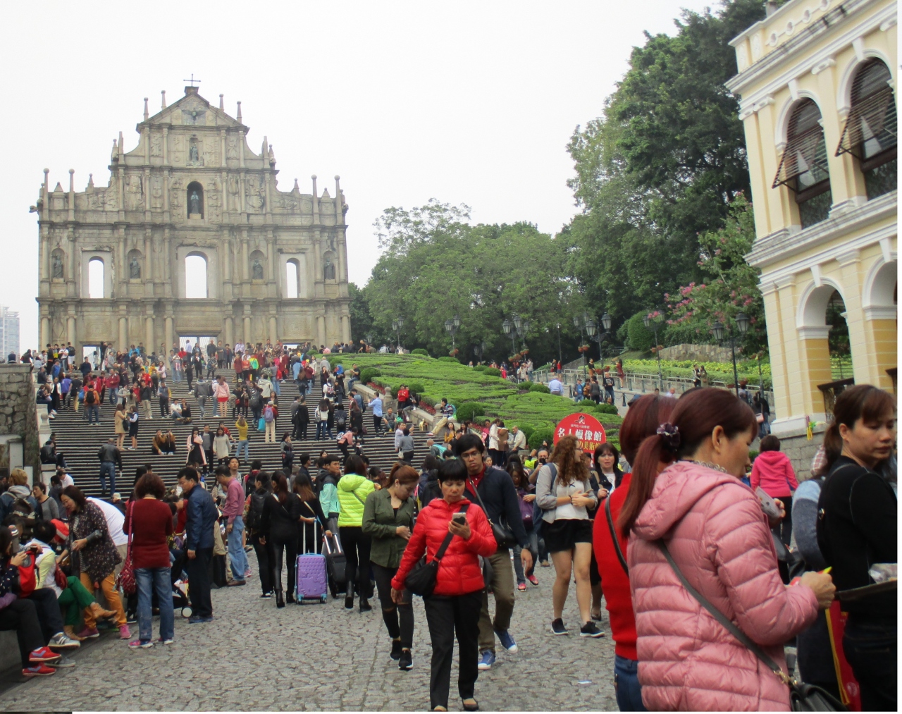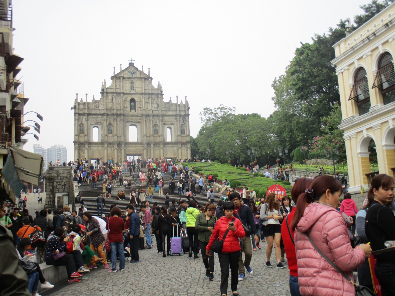 せっかく、マカオ観光の象徴的な場所にきたのに、観光客の波に押されるような感じで、一面のみを残して立ち続けるファサードを少しも堪能できませんでした。- 旅行時期