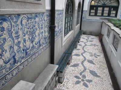 中庭には、ポルトガルのブルーの絵タイル アズレージョと、ポルトガルの詩人 ルイス・デ・カモンエスの胸像があります。