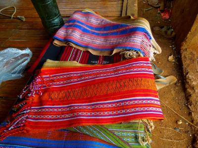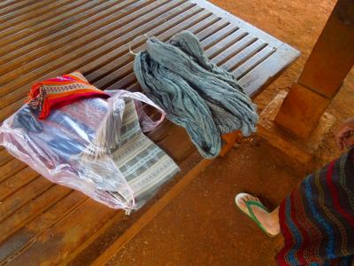 家の土間では女性たちが腰を折って織っており、見学に行くと、どこからとなく自分の作った布を持って女性が現れます。