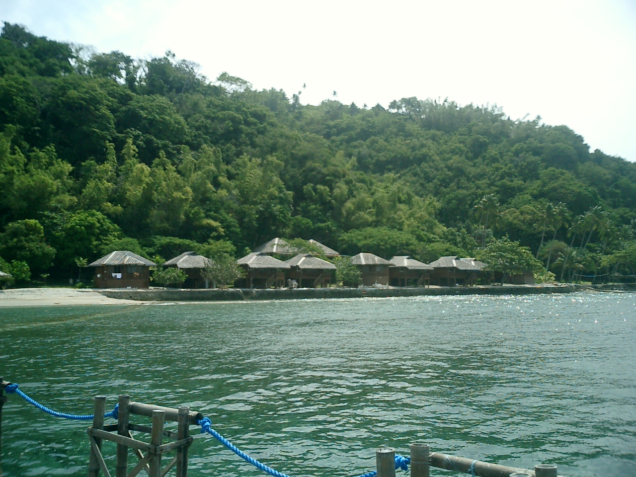バタンガス市東寄り郊外のクラブ・マブハイ・リゾートから朝10時と夕方4時に送迎の無料プライベートボートで1時間。宿泊料はツインでアパートメント6000ペソ、コテージ6500ペソ、大き目のバンガローは7000ペソ程度だったと思います。