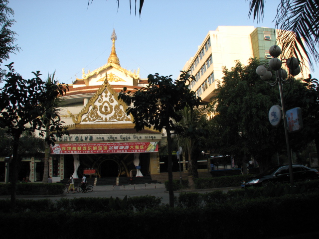 景洪市の観光エリアのど真ん中にある高級ホテルです。通常スウィートルーム1800元(27000円)、スタンダードルーム628元(9420円)ですがGWのこの時期で現地で260元(3750円)でした。輝煌都暢大飯店の建つ交差点は皇冠大酒店、金版納酒店と高級ホテルが向かい合っています。ホテルの南側には夜市も並び観光には便利な所です。