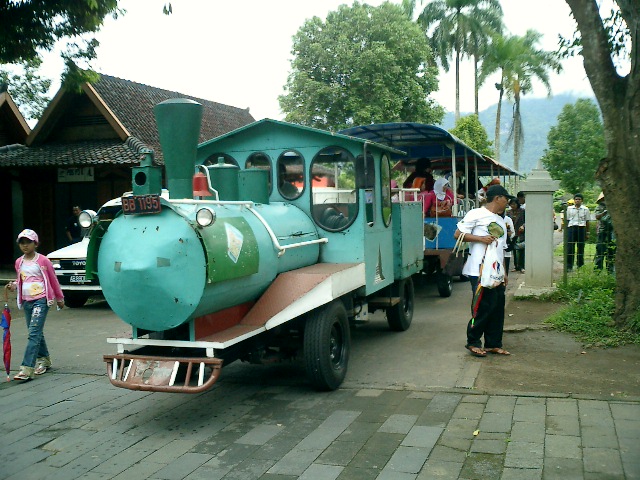 外国人は入園料$10を徴収されますが、この園内列車は無料で利用できます。インドネシア人は1周30,000ルピアのチケットを買っています。私も払おうとすると入園料を払ってくれた人は無料だそうで「ユー フリー」と言われて乗りました。子供の頃の遊園地みたいで楽しいものです。(発着場の表示には3,000ルピアと30,000ルピアと2つ価格が書いてあります。1区間と1周の価格のようです。)