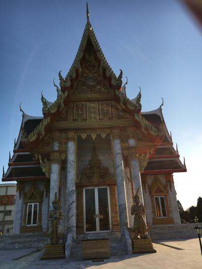私はクルマで行ったので駐車場の正面には信者さんたちが集まって何やら話をされてる建物があり多分集会所兼食堂のように使われています。右奥にある本堂はまさにタイのお寺そのものです。タイから大工さんを呼んで来て作られたそうなのでそれも当然ですか。