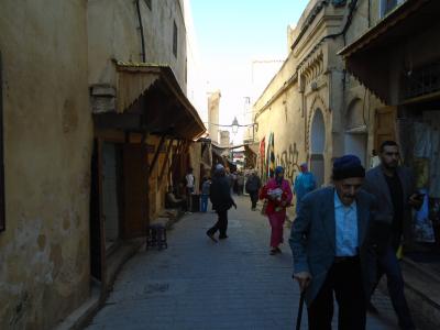 iphoneの位置情報でシャウエン、フェズとイスラム圏の迷路のような路地を回りましたが、カラウィンモスクからルシーフ広場辺りは位置情報でルート検索が全くできませんでした。おそらく非常にに狭い路地が続いて入り組んでいるからだと思いますが、通ってきた記憶と磁石を便りに人が通っている少し広目の路地に出ることが出来ました。