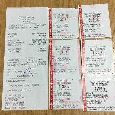 マラガ空港から市内へのアクセスは市内の鉄道駅とバスステーションは隣なのでどちらでもよかったんですが先にバス停があったのでバスで移動しました。料金は3ユーロでいろんな番号のバスが来ますがCENTROと行先が書かれたバスに乗ります。